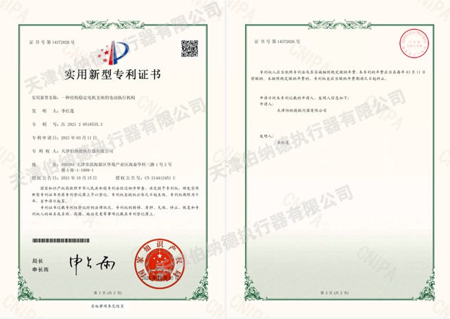 天津伯納德執行器有限公司(以下簡稱天津伯納德)位于高新產業園區—華苑產業園區,是受國家扶持的高新技術企業,連續9年獲得了“國家高新技術企業證書”,并且獲得了“天津市市級高新技術企業證書”和“國家科技型中小企業”、“天津市科技型中小企業認證證書”等榮譽稱號。